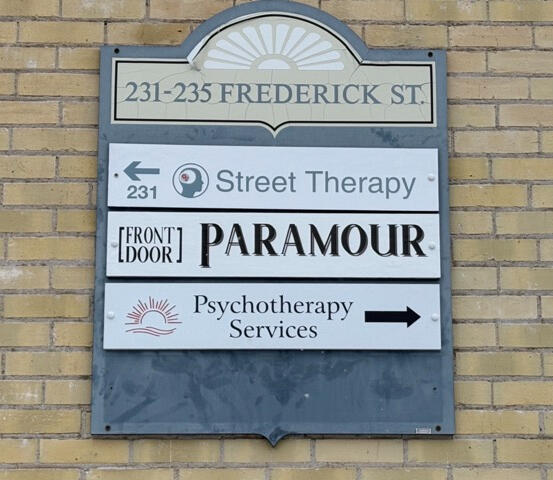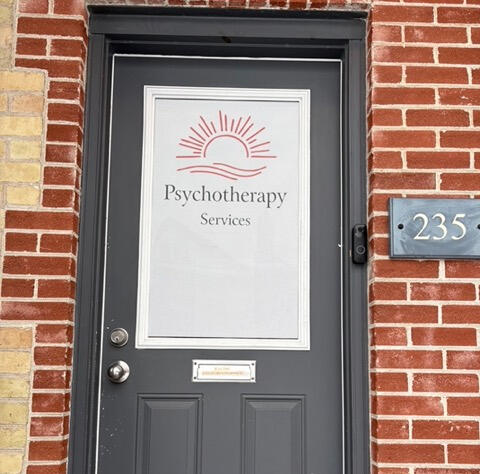 Look for the “Psychotherapy Services” sign. Stairs are the only access to the waiting room, so the office is not wheelchair accessible. Please contact me with any questions or accommodation needs.
